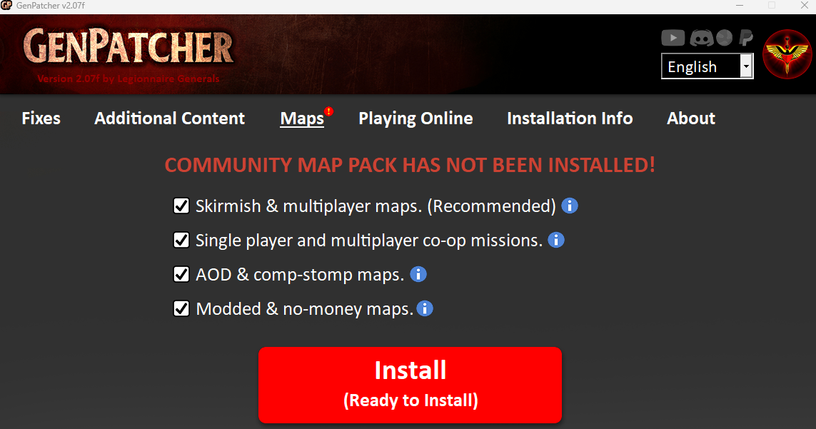 - On the 3rd Tab, install All Maps.