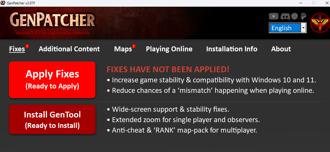 - Apply Fixes & Install GenTool on the 1st Tab.
